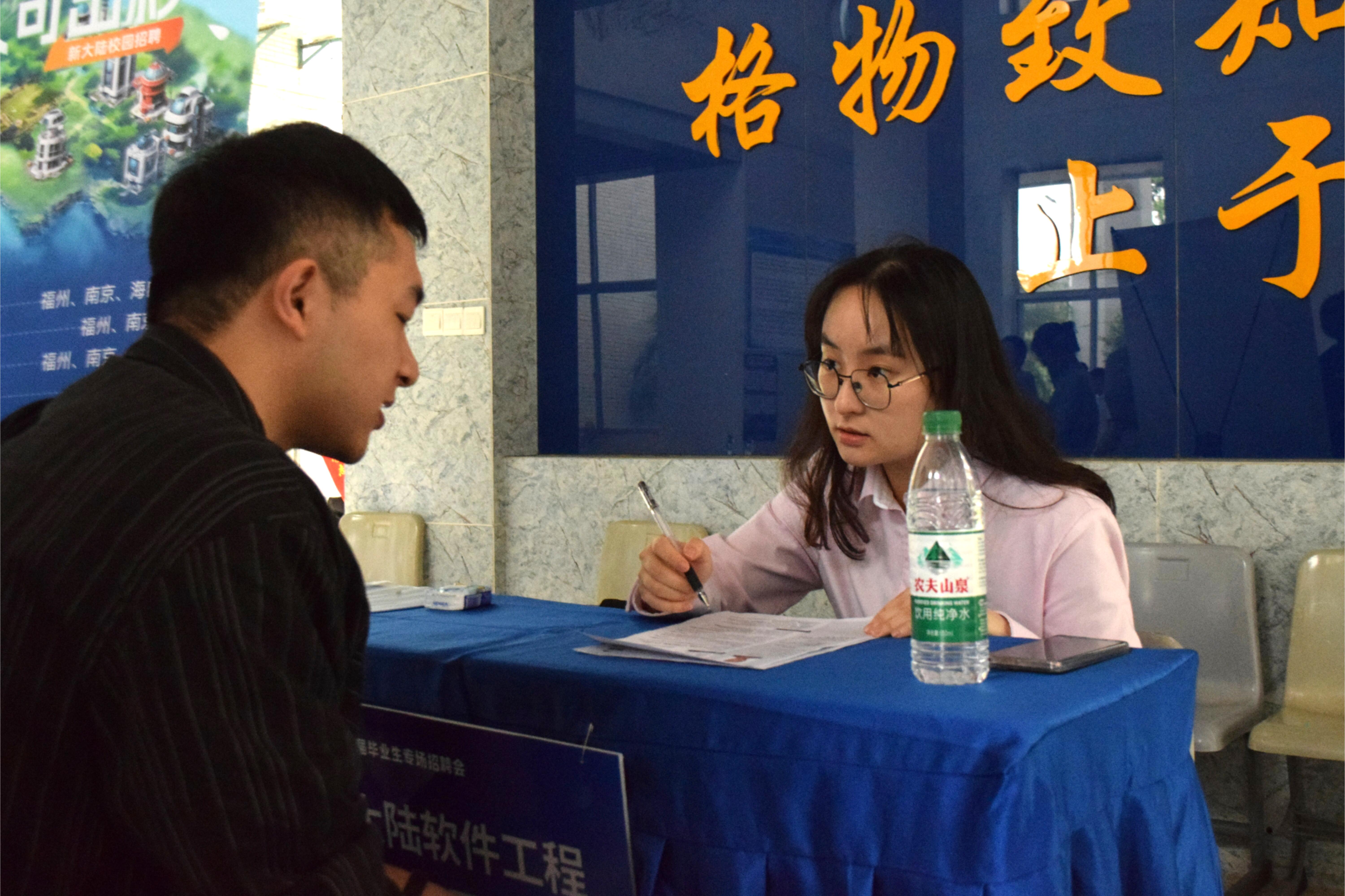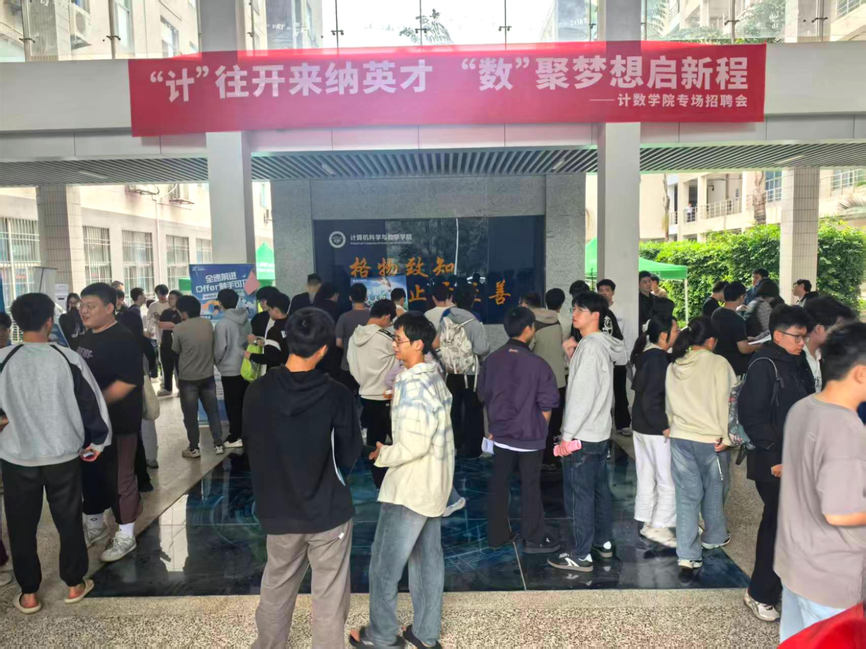 10月29日下午,由校学生工作部主办、计算机科学与数学学院承办的2026届计算机类毕业生专场招聘会在旗山校区北校区至真楼顺利举行。本次招聘会以“‘计’往开来纳英才 ‘数’聚梦想启新程”为主题,吸引了福建新大陆软件工程有限公司、九牧厨卫股份有限公司等27家用人单位参与,提供近260个就业岗位,涵盖计算机服务、软件、制造、教育等多个行业领域,现场气氛热烈,约500名毕业生积极参与应聘。