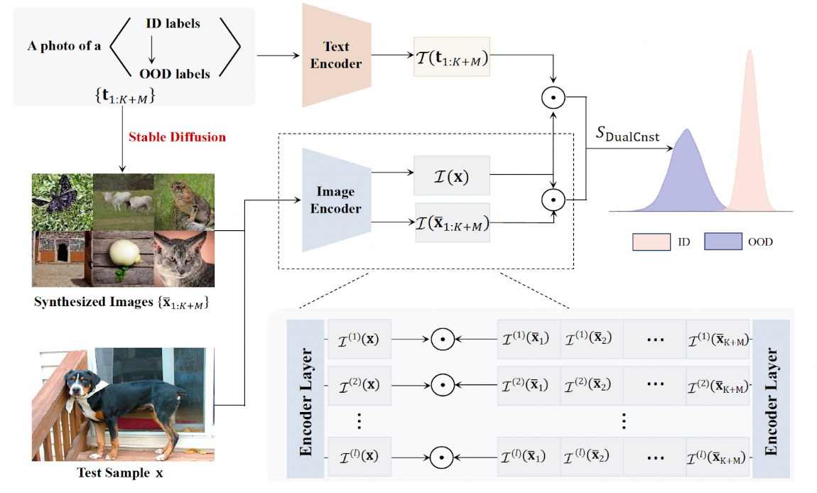 近日,我院贺文武教授团队与中国科学院先进技术研究院的崔卓须研究员以及香港浸会大学合作,在人工智能顶级会议NeurIPS 2025上发表了题为《DualCnst:Enhancing Zero-Shot Out-of-Distribution Detection via Text-Image Consistency in Vision-Language Models》的论文,该论文由贺文武教授指导,其研究生乐发燚为第一作者,贺文武教授为第二作者兼通讯作者。