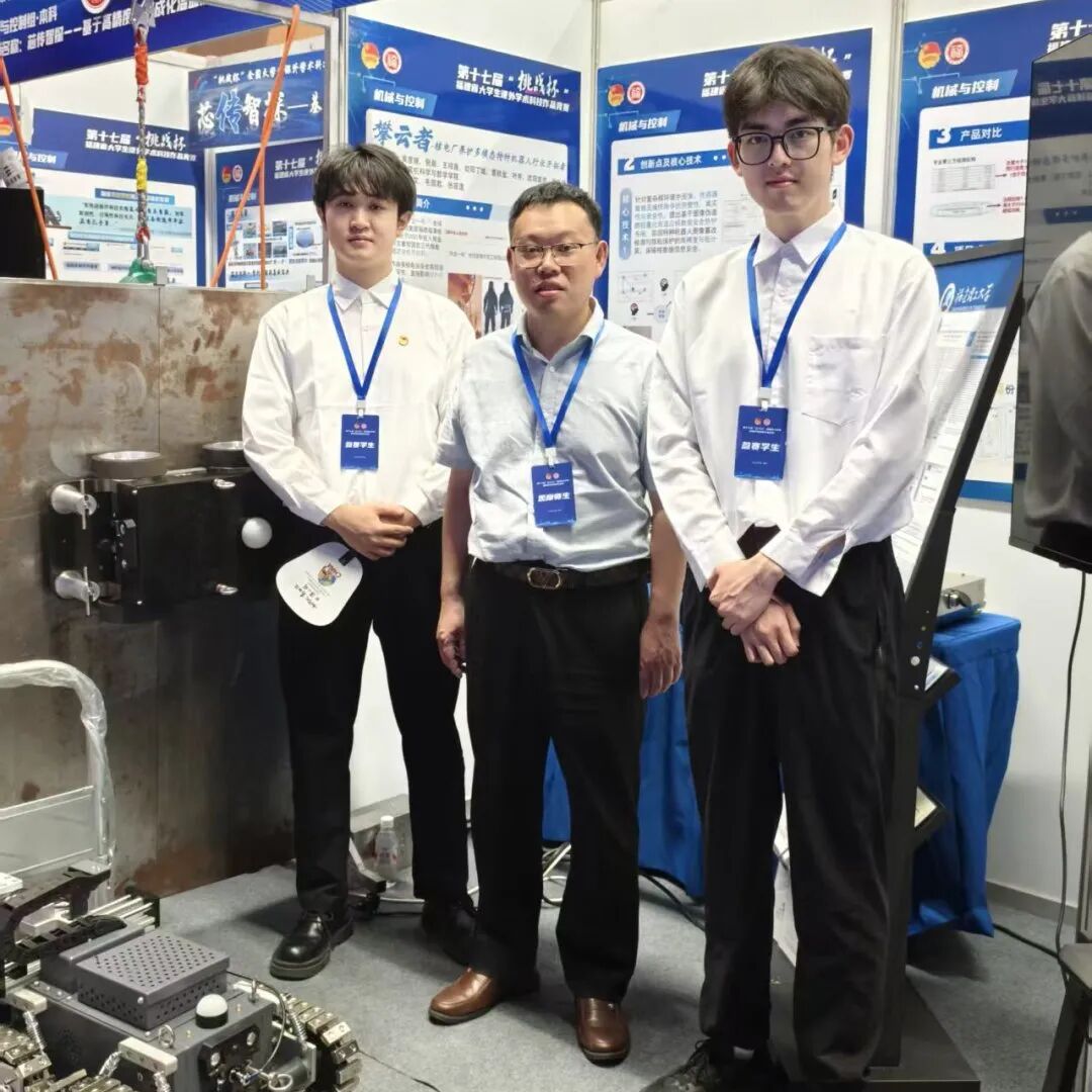 10月31日至11月3日,由共青团中央、中国科协、教育部、中国社科院、中国工程院、全国学联和江苏省人民政府共同主办的第十九届“挑战杯”全国大学生课外学术科技作品竞赛终审决赛在南京大学举行,来自472所高校的1283件作品在决赛同台竞技。我院学生黄彦骁、石宇轩、张旺、贺鼎、施文龙、王梓晨、廖丽鑫、杨克鸿等组成的参赛团队(指导老师:陈鲤文、毛国君、张筱逸),凭借《攀云者——核电厂养护多模态特种机器人行业开拓者》项目,荣获主体赛三等奖的优异成绩。
