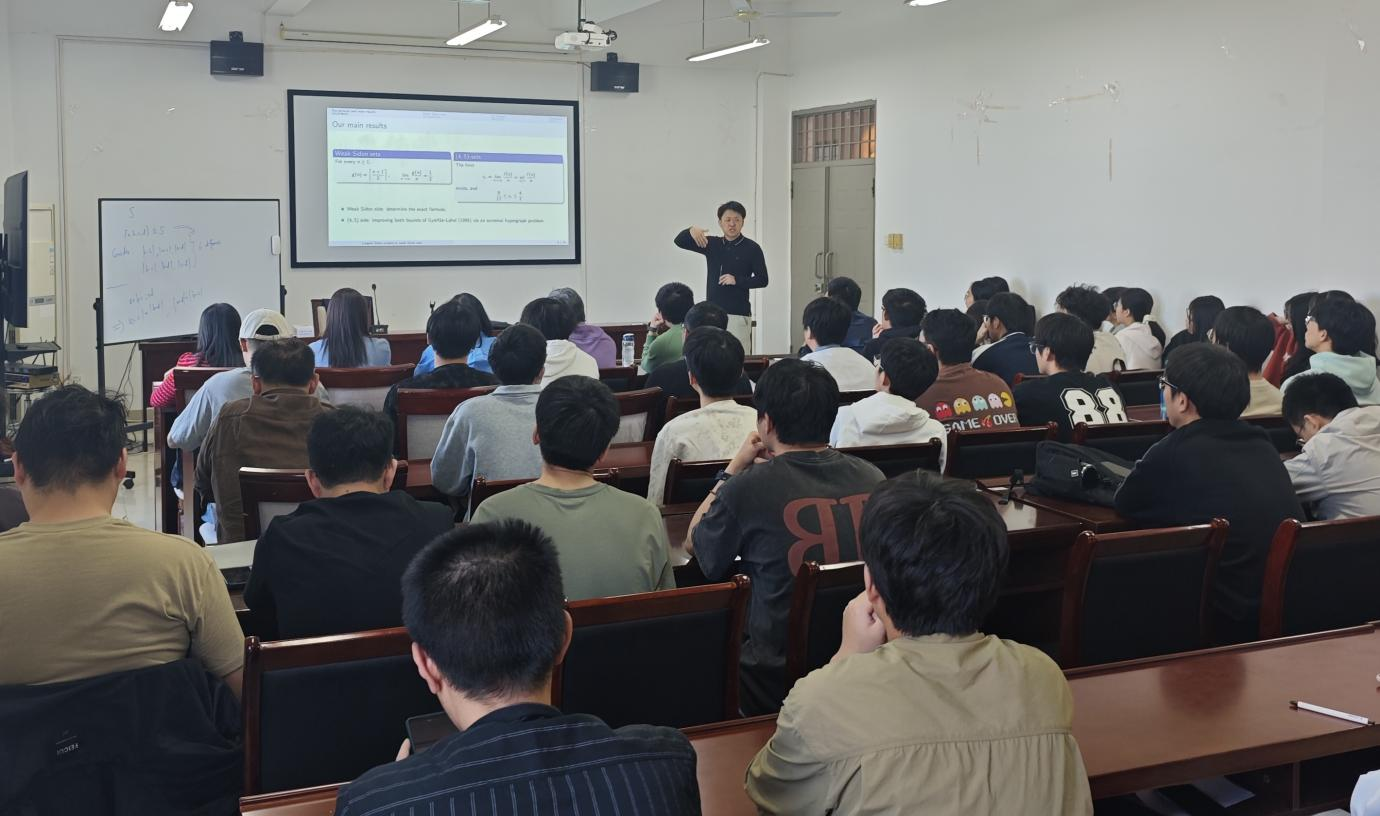 马杰教授在报告中系统介绍了Sidon集与weak Sidon集的基本概念及相关研究背景,重点围绕weak Sidon集中最大Sidon子集的规模问题进行阐述,并完全解决了Sárközy与Sós提出的经典问题。他还进一步介绍了与Erdős提出的局部差值问题相关的研究进展,并给出了改进上下界,充分展示了极值组合领域在结构分析、构造方法与组合思想相结合方面的研究特色。